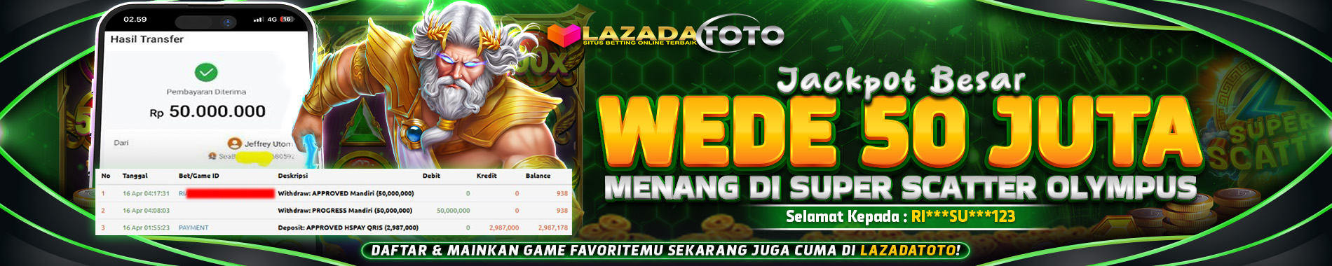A: Semua informasi yang anda masukan di LAZADATOTO akan sangat di rahasiakan.